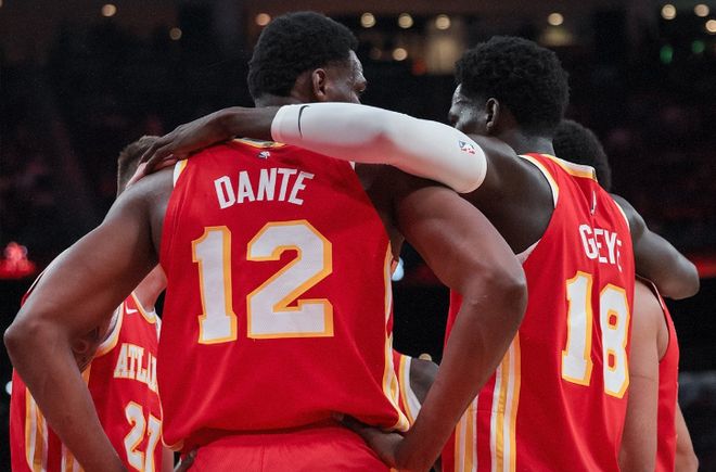 本场比赛中,今年夏天刚刚加盟老鹰的前火箭内线新星恩法利-丹特(N'Faly Dante)面对着自己的老东家的表现还是相当不错的。丹特全场出场12分51秒,期间没有完成1次投篮,罚球2中0,全场1分未得,但也贡献了10篮板1助攻1盖帽的数据,还有1次失误和3次犯规,正负值为-4。丹特在进攻端的表现非常一般,他在进攻端的存在感确实是比较有限的,不过他在防守端的表现也是非常突出的,他展现出了超强的篮板争抢能力,他在这方面的表现可以说是现象级的,而且他也能够利用身体天赋和对抗能力方面的优势完成护筐方面的任务。能够在出场时间不多的情况下刷出这样的数据,也是一件不太容易的事情,也说明了丹特也是一名个人特点非常鲜明的球员,他也是能够在场上通过自己的能力去影响到比赛的局面的。