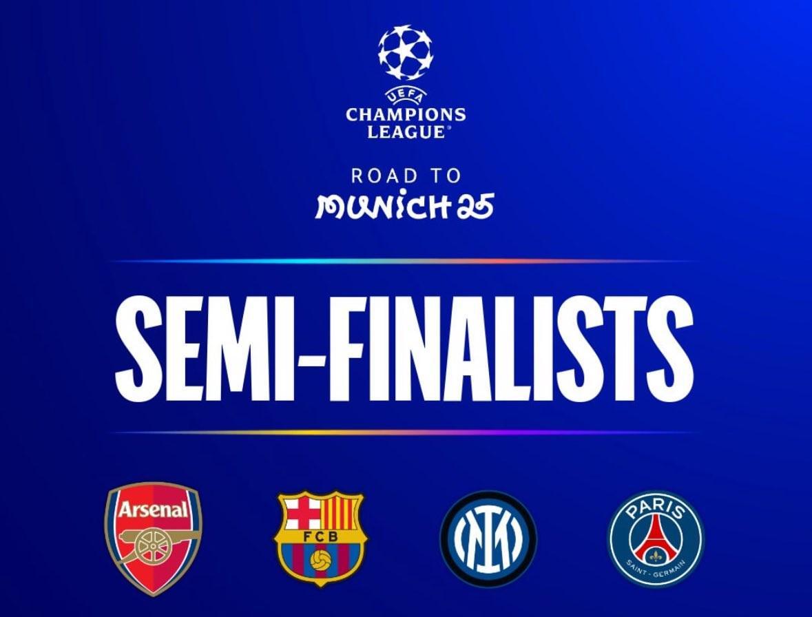 上赛季欧冠四强本轮均取得大胜,四队前3轮总成绩为11胜1负