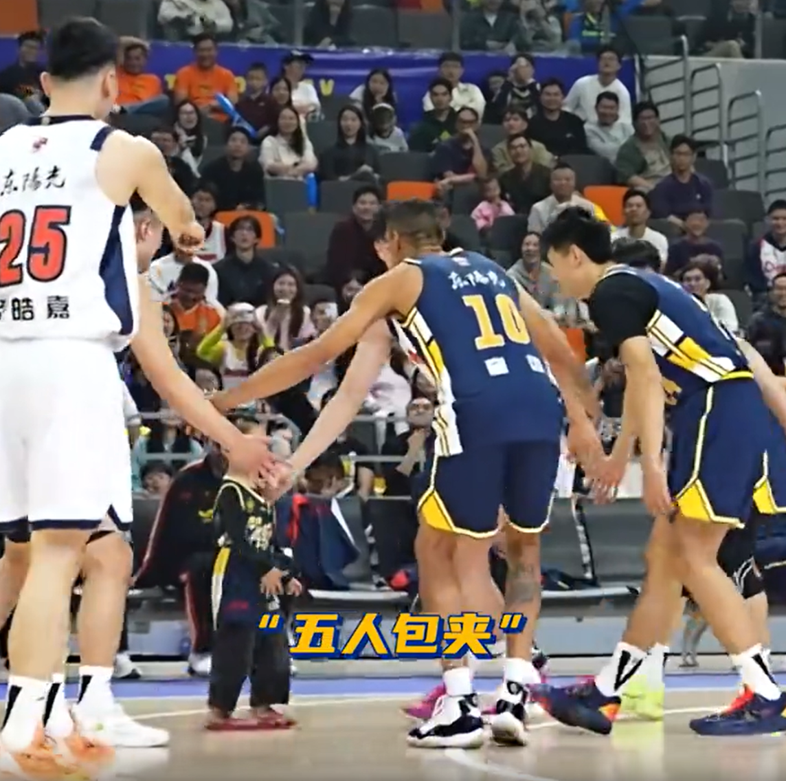 有趣!5岁小女孩穿着人字拖,面对5名广东队球员的防守,完成扣篮